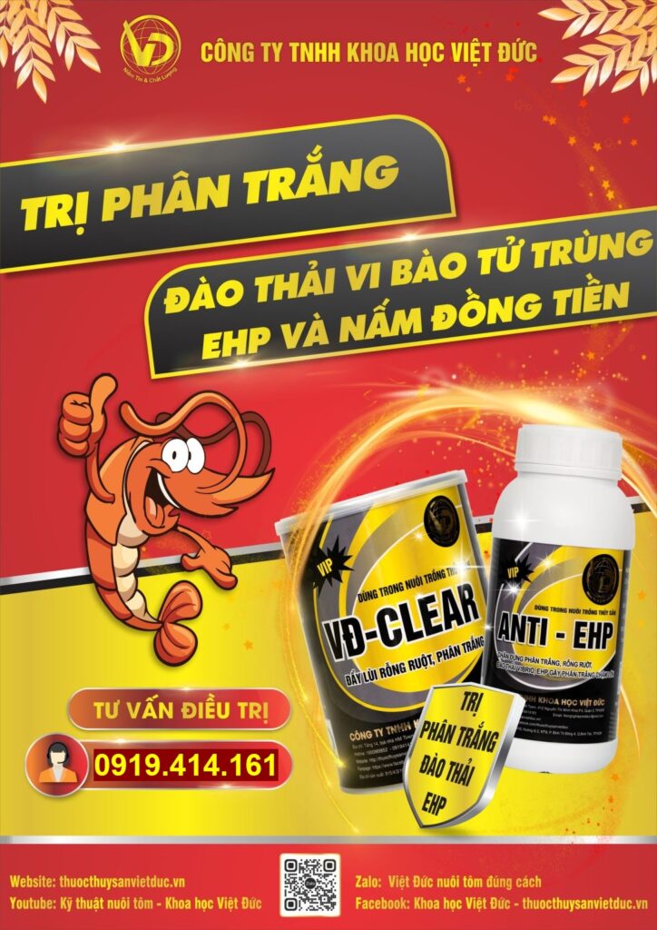 BỘ ĐÔI ANTI-EHP VÀ VĐ-CLEAR Chặn đứng phân trắng, rỗng ruột, đào thải EHP trên tôm
