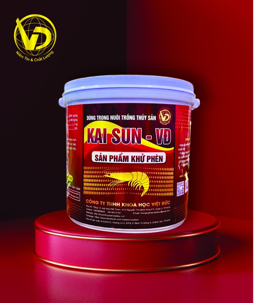 – Cách 2 là Sử dụng KAISUN – VĐ để xử lý phèn, khử kim loại nặng có trong ao nuôi.Trong quá trình nuôi có thể sử dụng KAISUN – VĐ định kỳ để lắng kim loại nặng, lắng phèn sắt trong môi trường nước. Kèm theo bà con nên sử dụng chế phẩm vi sinh xử lý định kỳ để giúp ao nuôi sạch, hạn chế khí độc, không phát sinh mầm mống phèn trong ao nuôi giúp tôm không bị vàng chân, vàng mang, chết rải rác.